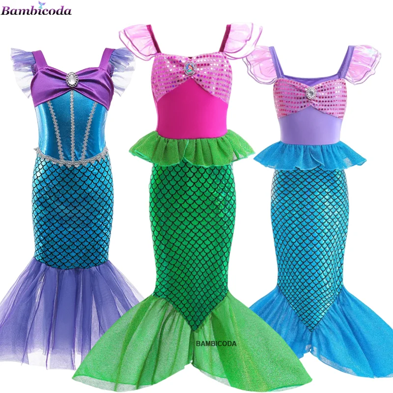 Little Mermaid Ariel Princess Dress Kid Halloween Cosplay Costumes Fancy Dress Clothes Girl Mermaid Birthday Party Ball Gowns