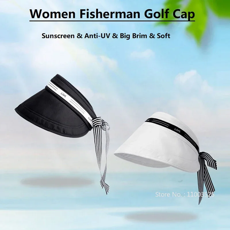 • Love Golf Wide Brim Empty Top Hat Women Fashion Trendy Simple Fisherman Hat Versatile Lady Breathable Sunscreen Golf Cap Gift