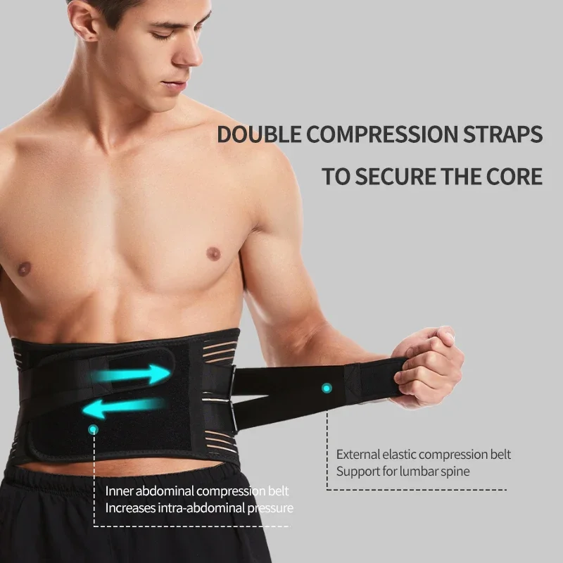 Back support with 2 elastic straps are designed to add extra compression around lower back to prevent back injuries from weight lifting, long time standing or sitting, doing housework, working, etc. Relief waist muscles ache, disc herniation, sciatica, scoliosis etc when wearing the back belt.