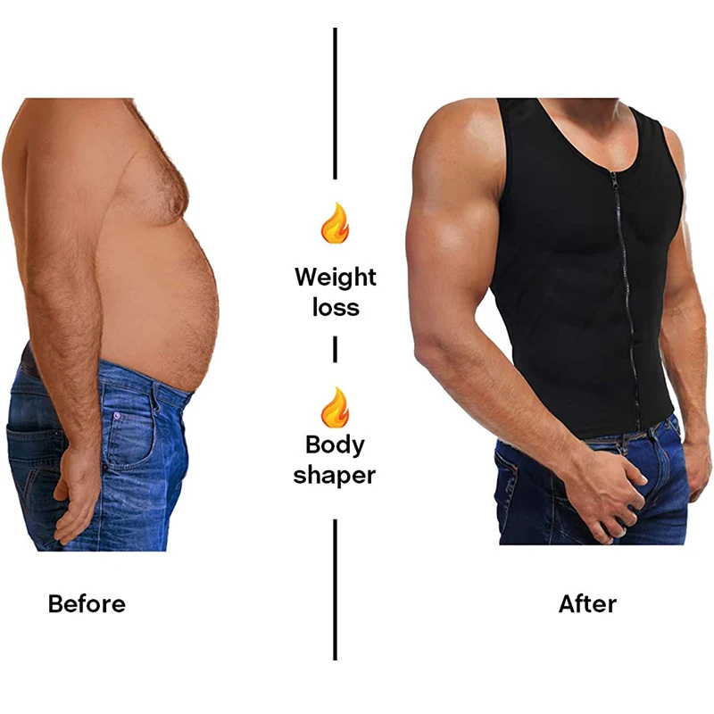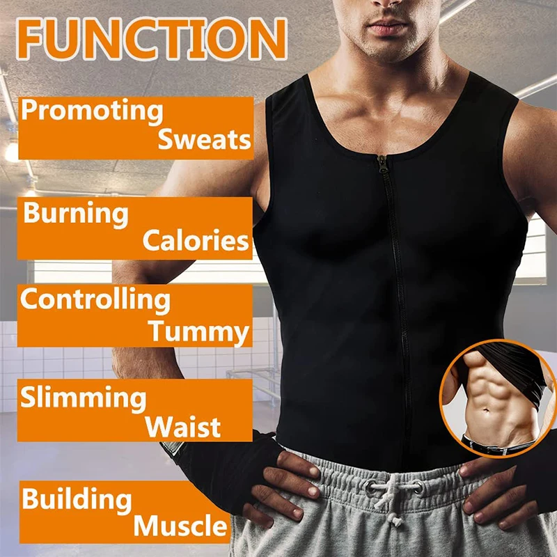 Men’s Heat Trapping Zipper Sweat Enhancing Vest – Sauna Suit Shirt Compression Vest Shapewear Tank Top for Gym Exercise