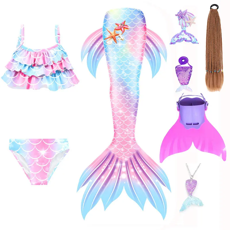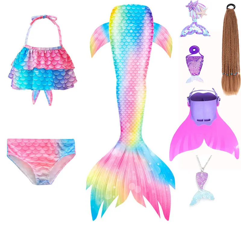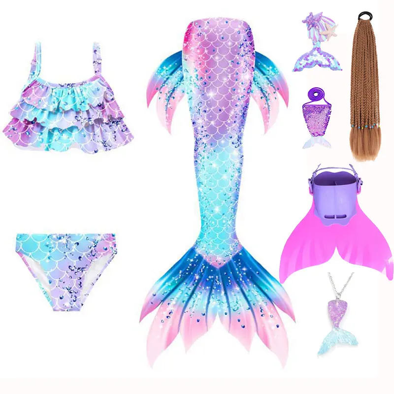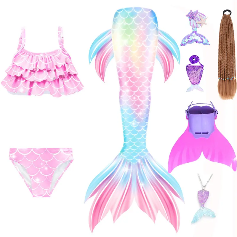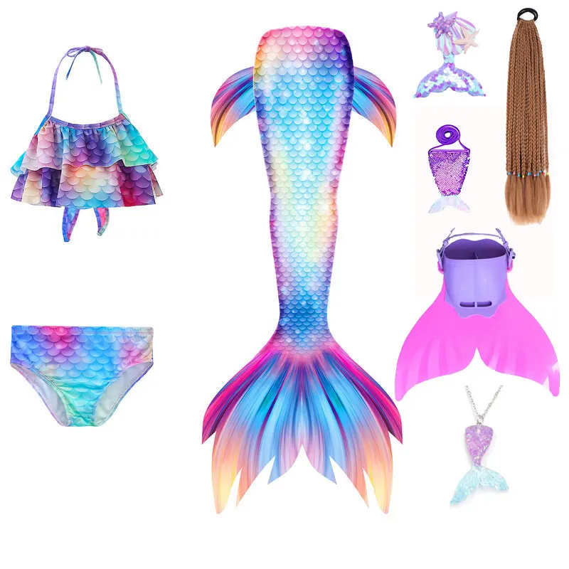 Mermaid Cosplay Costume For Girls Swimming Mermaid Tail Swimsuit Monofin Plait Hairpin Necklace Halloween Costume