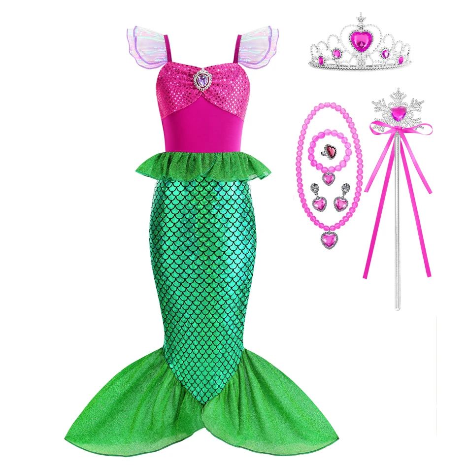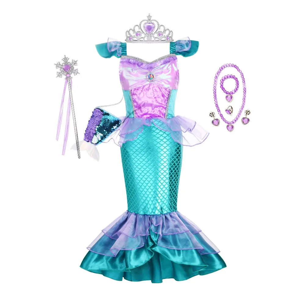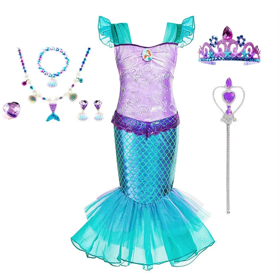 Mermaid Costume Girl Birthday Party Princess Summer Dress Kids Charm Dresses 3 4 5 6 7 8 9 10 Years
