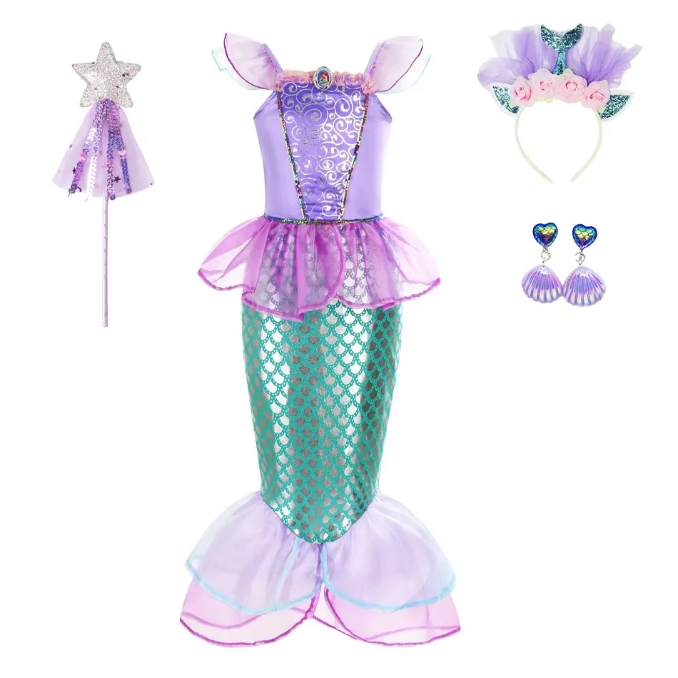 Little Mermaid Ariel Princess Costume Kids Dress For Girls Halloween Cosplay Children Birthday Part...