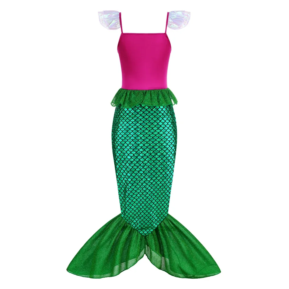 Sleeveless Beautiful Fish Princess Cotume For Girl 2025 Carnival Party Cosplay Dress Flying Sleeve ...