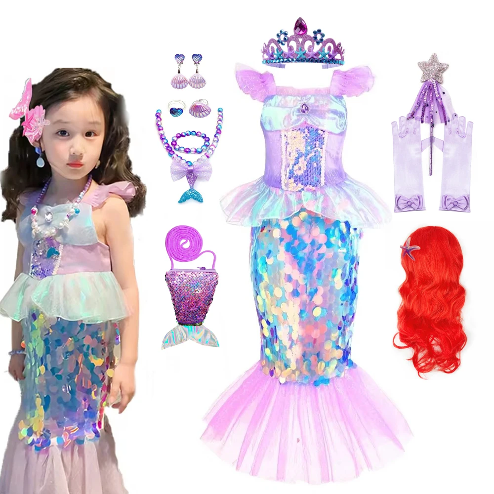 Little Mermaid Ariel Princess Costume Kids Dress For Girls Halloween Cosplay Children Birthday Part...