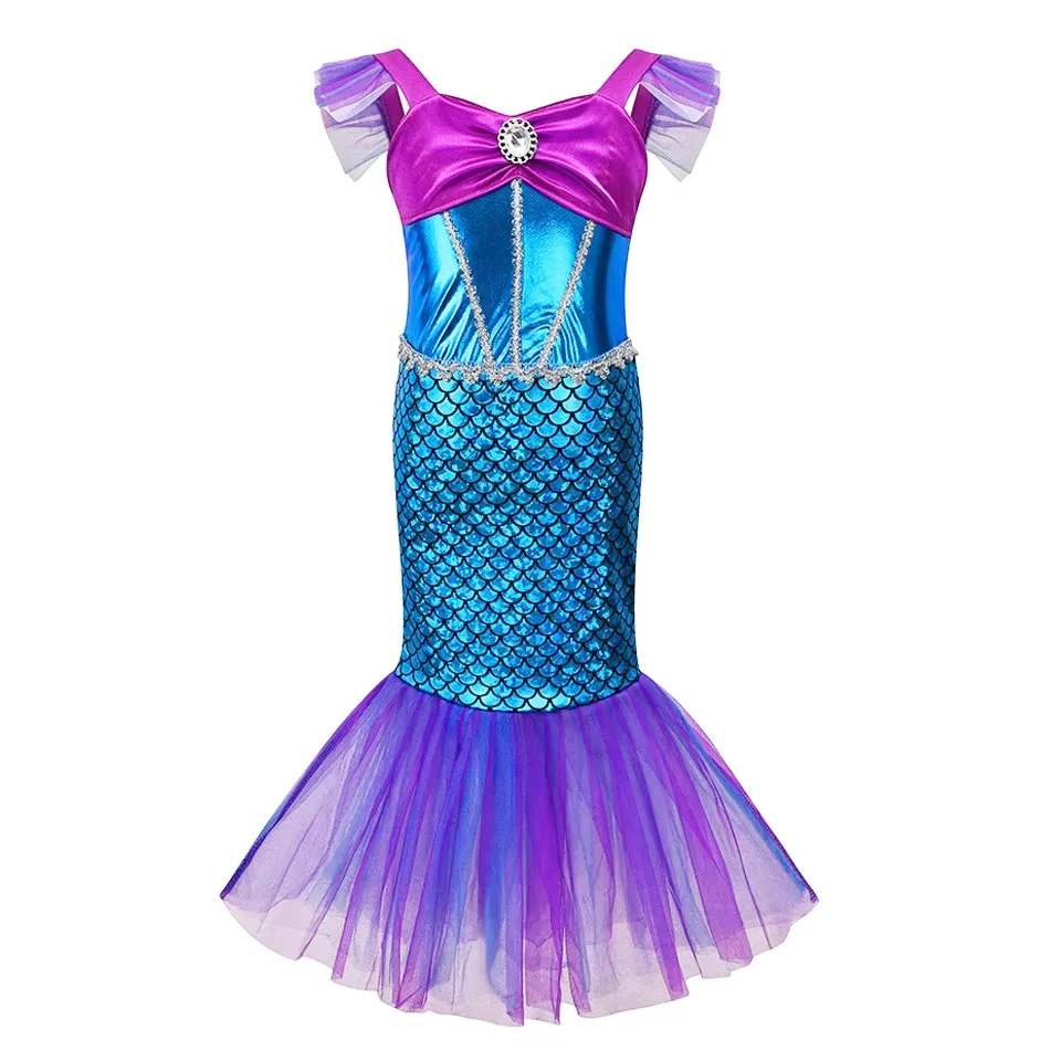 Sleeveless Beautiful Fish Princess Cotume For Girl 2025 Carnival Party Cosplay Dress Flying Sleeve ...