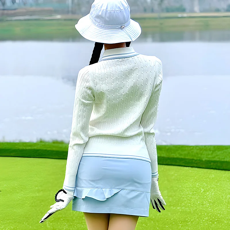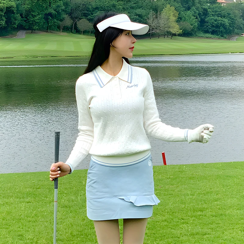 MG Golf Autumn Winter New Long-sleeved Top Polo Collar Knitted Shirts Lady Ruffle Slim Golf Skirts High Waist Sports Skorts Set