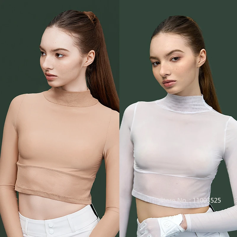 MG Ice Silk Long Sleeve Golf Shirt for Women High Neck Sunscreen Elastic Crop Tops Ladies Anti-UV Ultra Thin Skinny Underwear