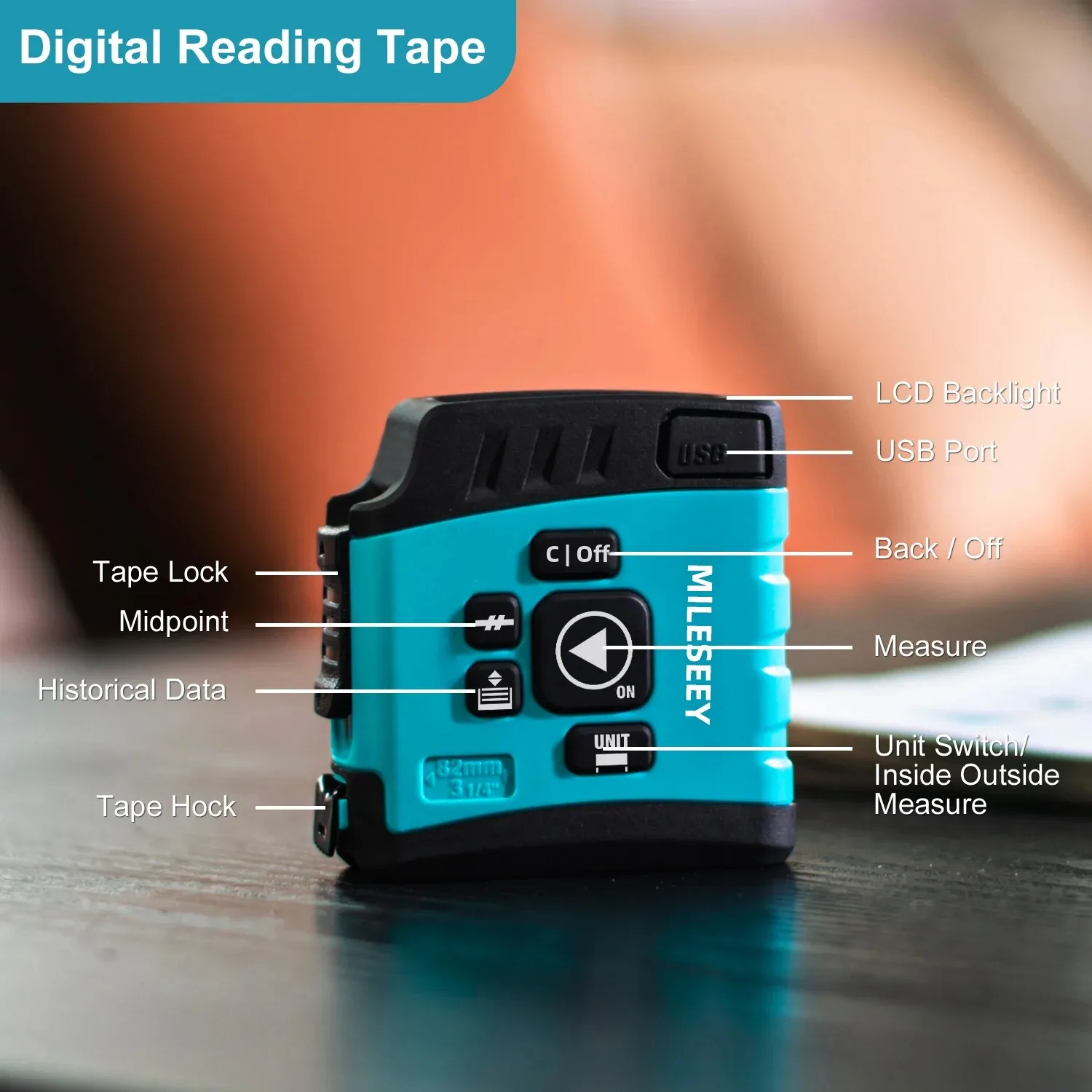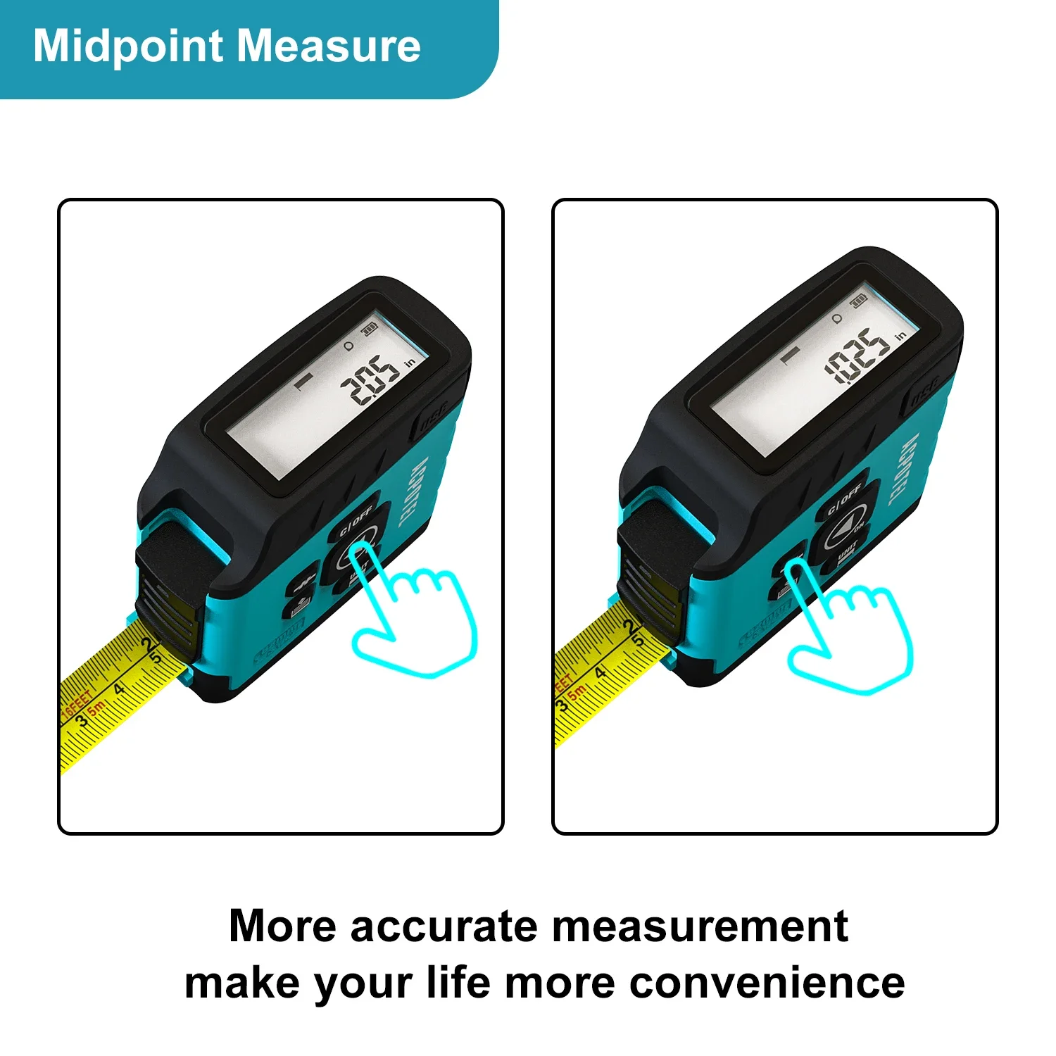 When the tape measure is pulled out, the measurement result will be quickly displayed on the screen in the digital display measurement mode