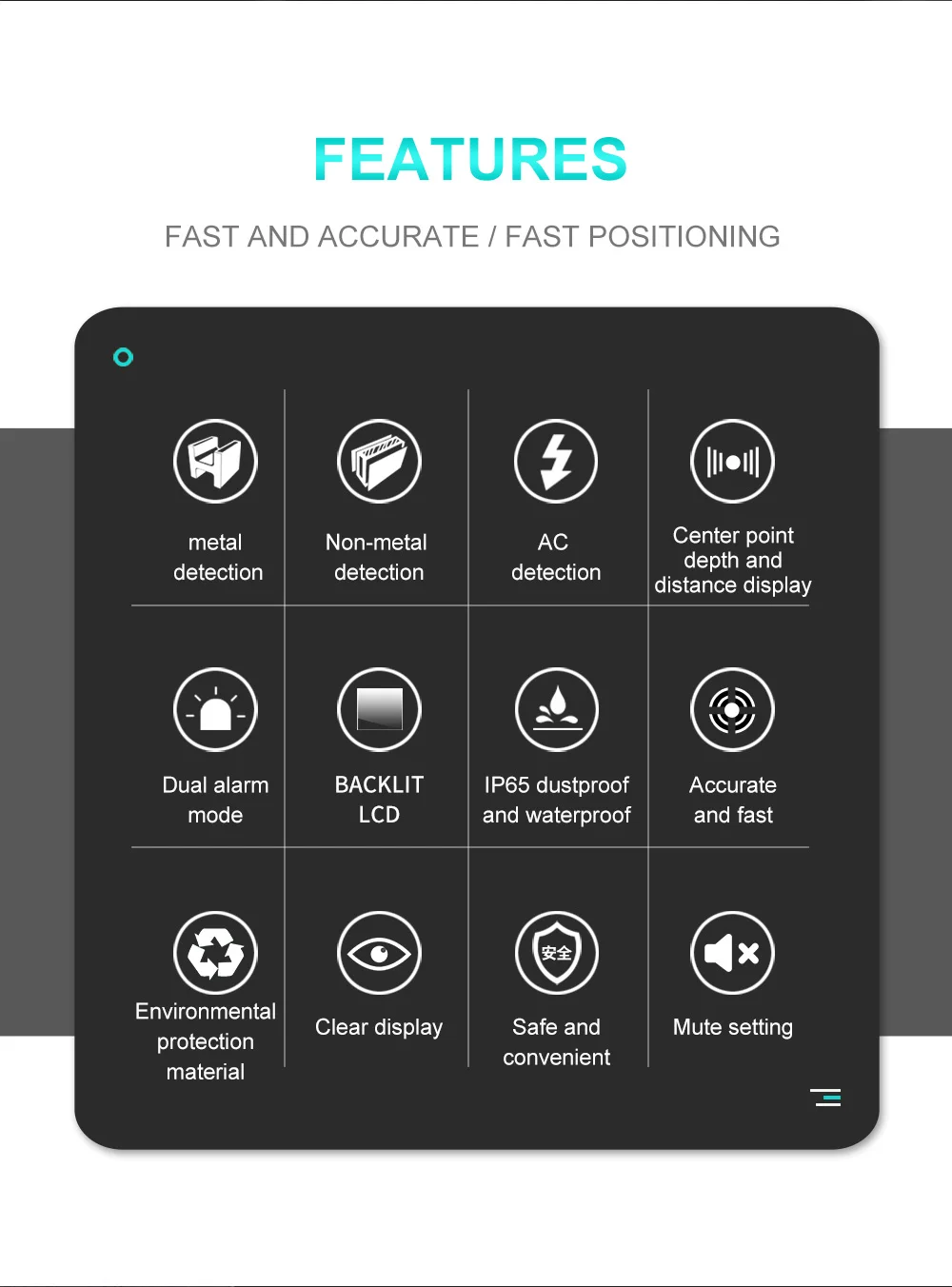 | Application | Wood/AC wire/ metal detector wall scanner |