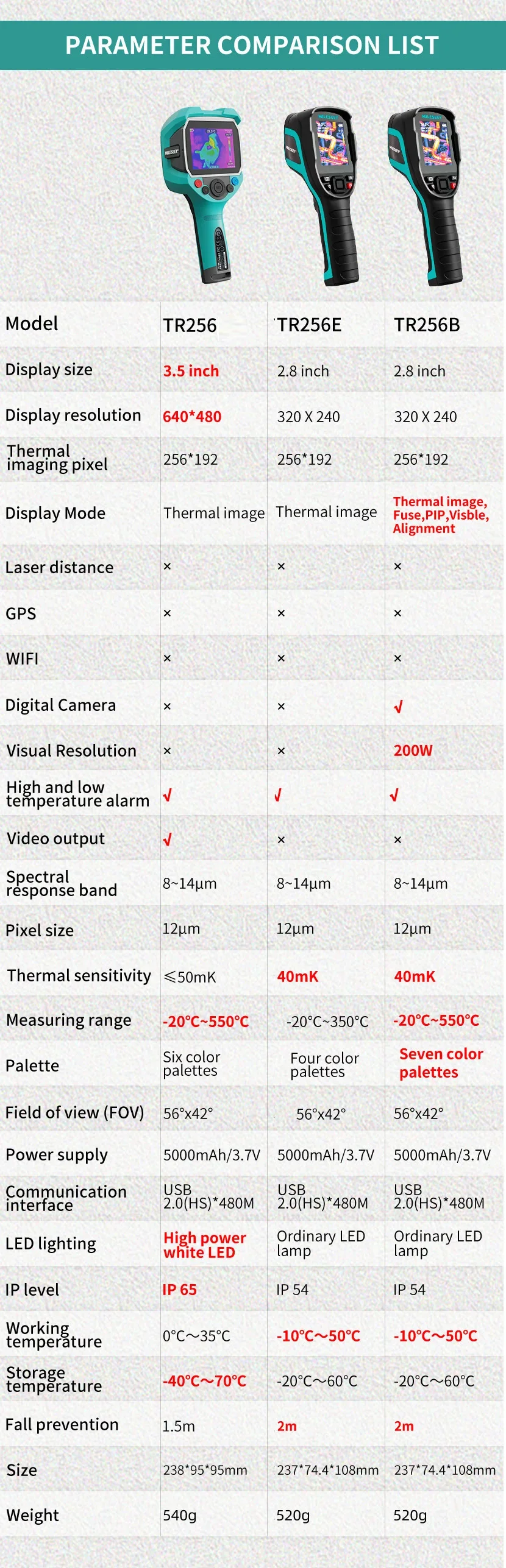 | Mode | Thermal Imager TR256B TR256E |