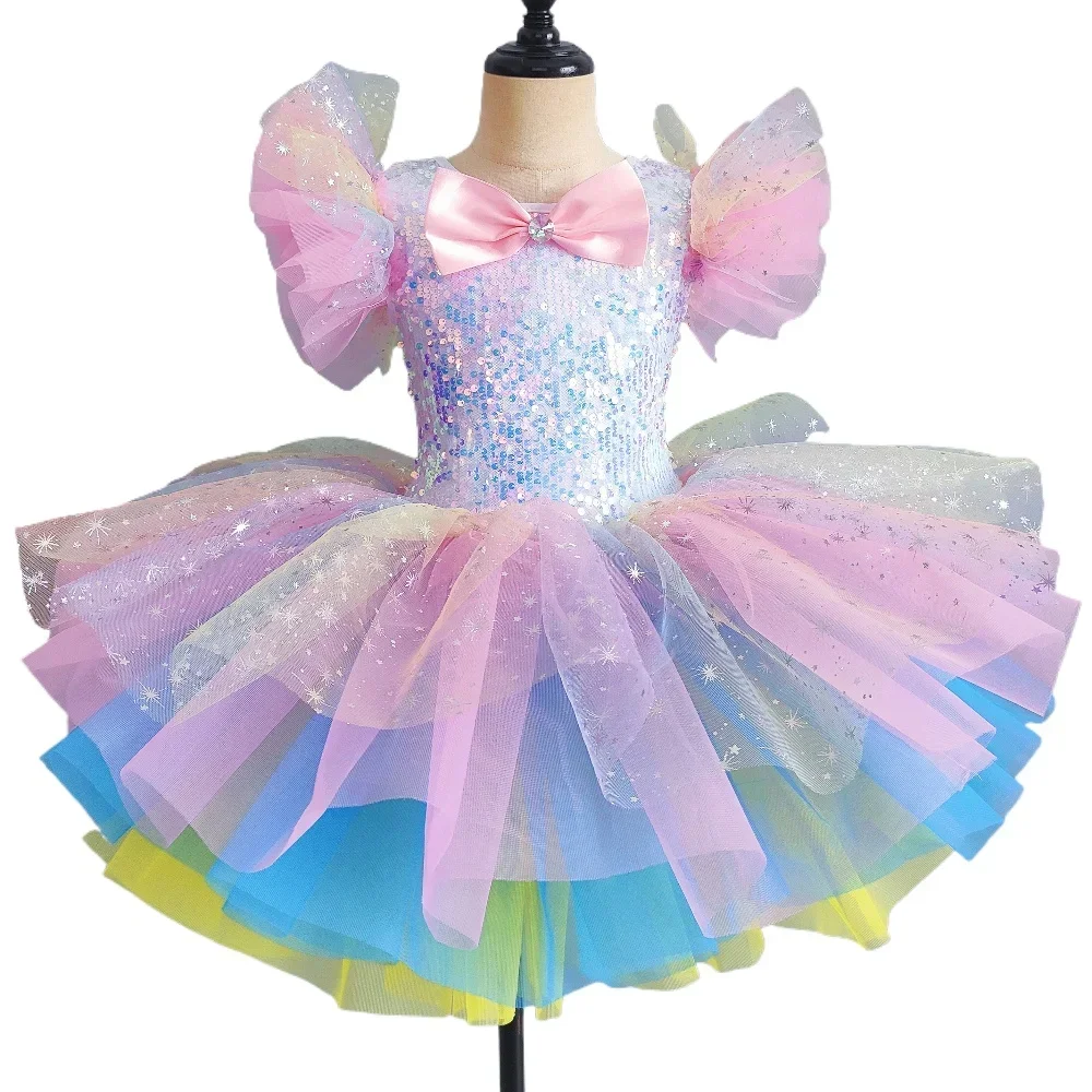 Mini Dance Performance Costume Fluffy Skirt Girl Runway Dress Cute Princess Dress