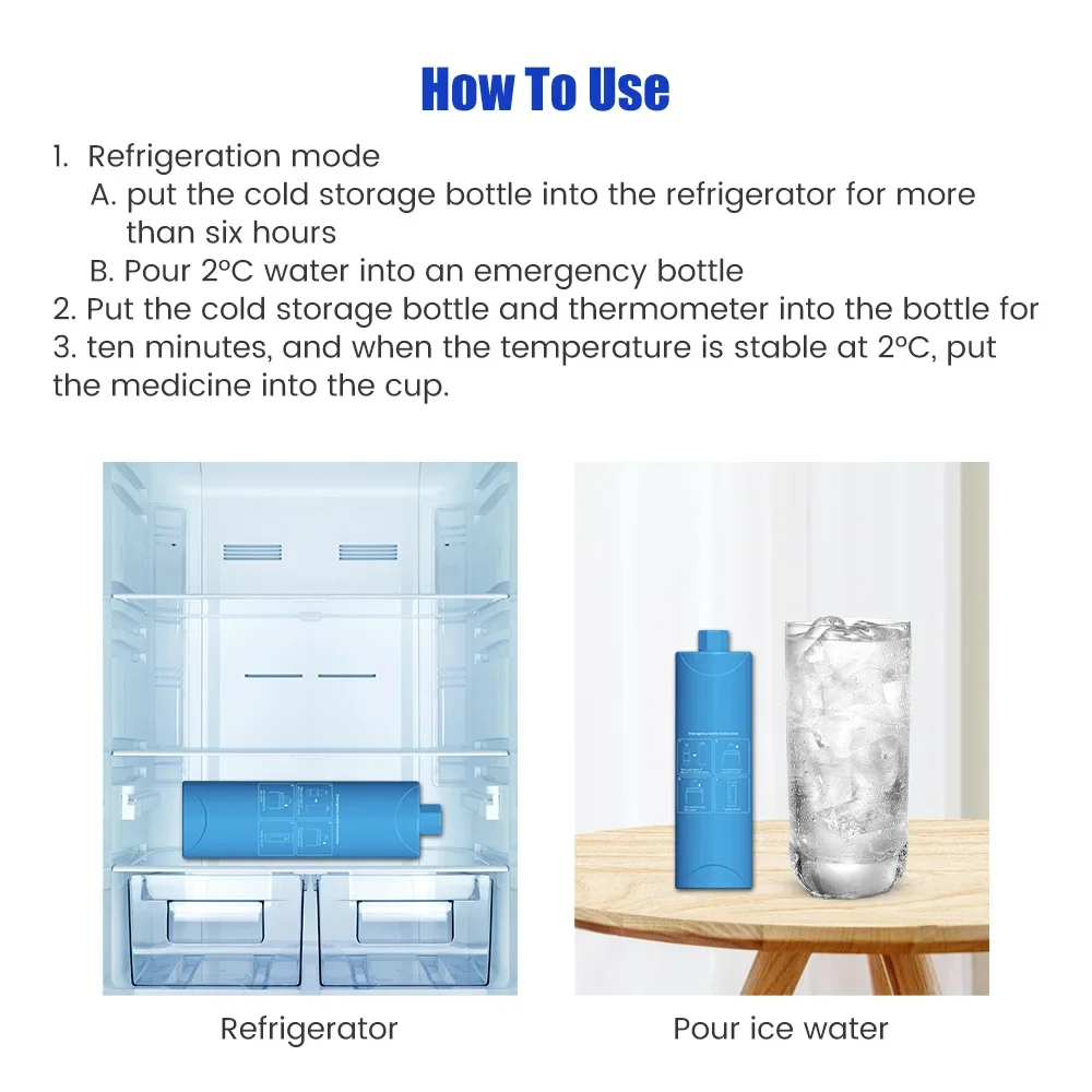 Put the cold storage bottle and thermometer into the bottle for ten minutes. When the temperature stabilizes at 2 ° C, put the medicine into the cup.