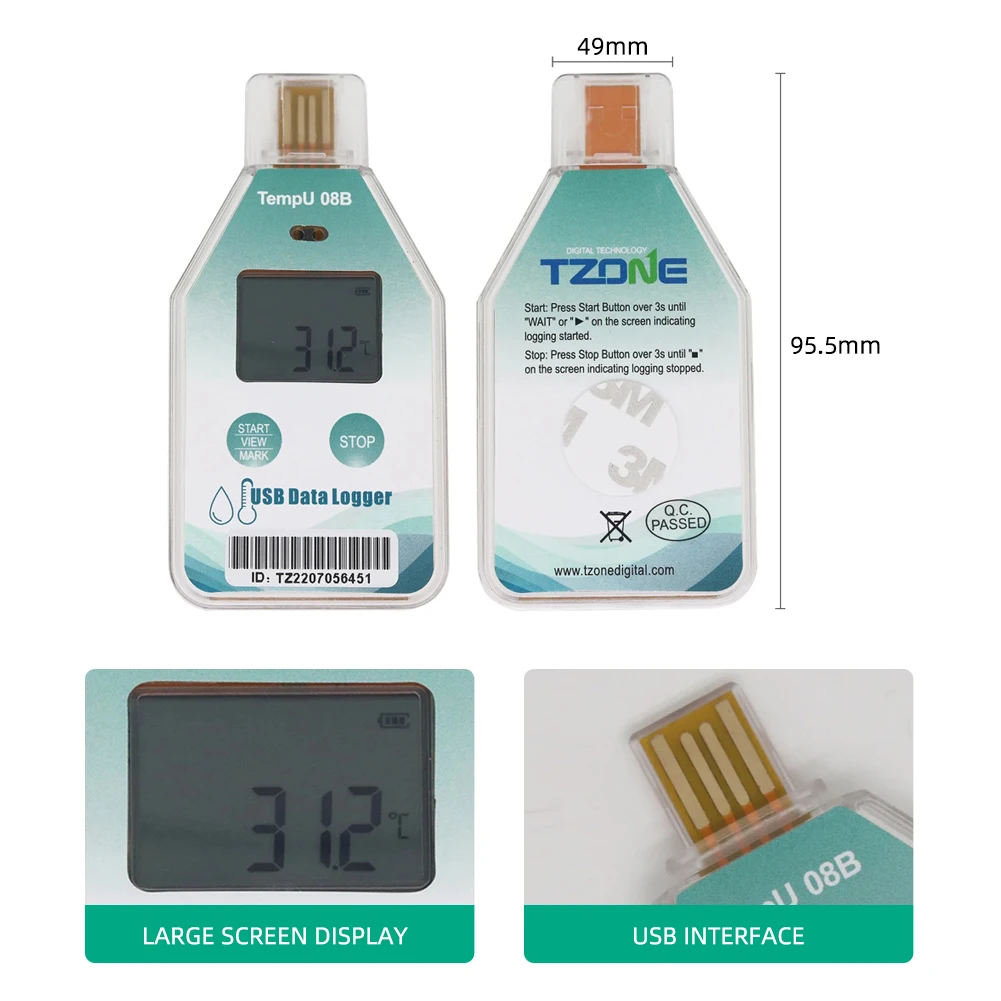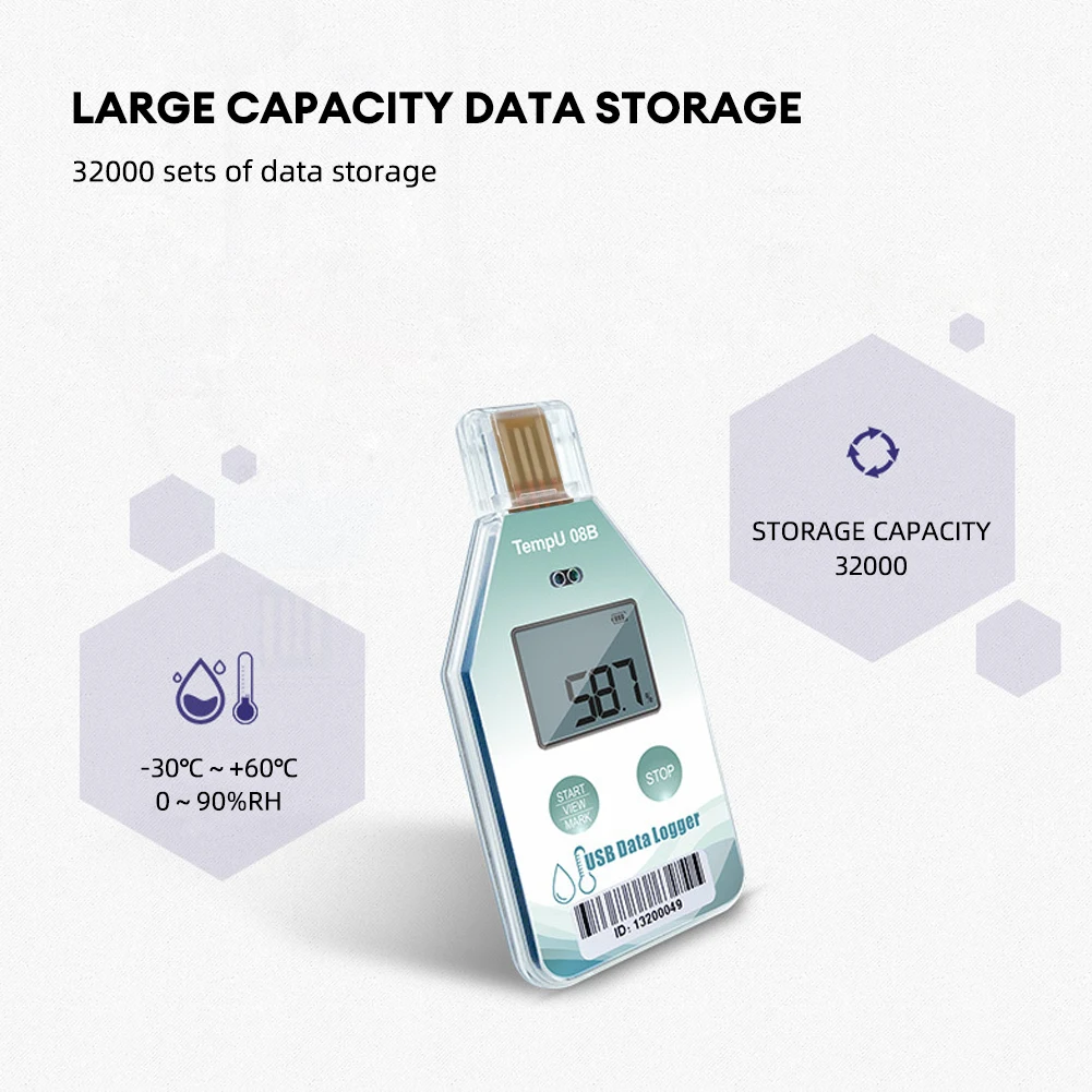 Mini USB Temperature Humidity Data Logger with 32000 Point PDF Report Thermometer Hygrometer for Laboratory Cold Chain Transport