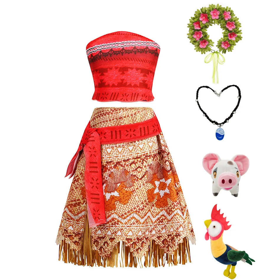 Moana New Dress Girls Princess Clothes Kids Dress Up Necklace Pig Chick Children Carnival Halloween...