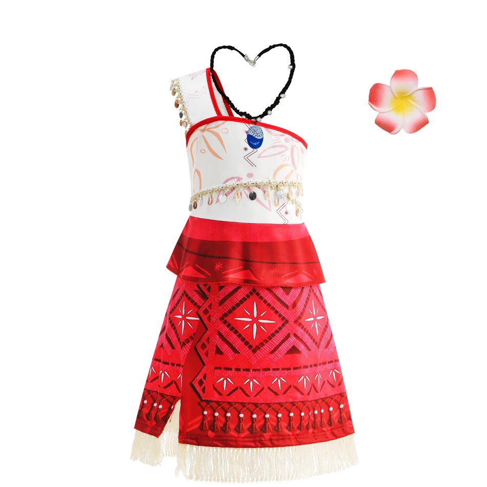 Moana Dress Kids Cosplay Girls Princess Vaiana Dress Children Birthday Party Costume Necklace Pet P...