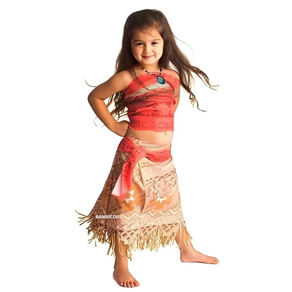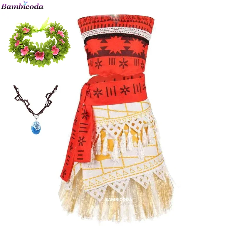 Moana Dress Kids Cosplay Girls Clothes Princess Children Birthday Party Costume with Necklace Pet Pig Chick Sets Kids' dresses