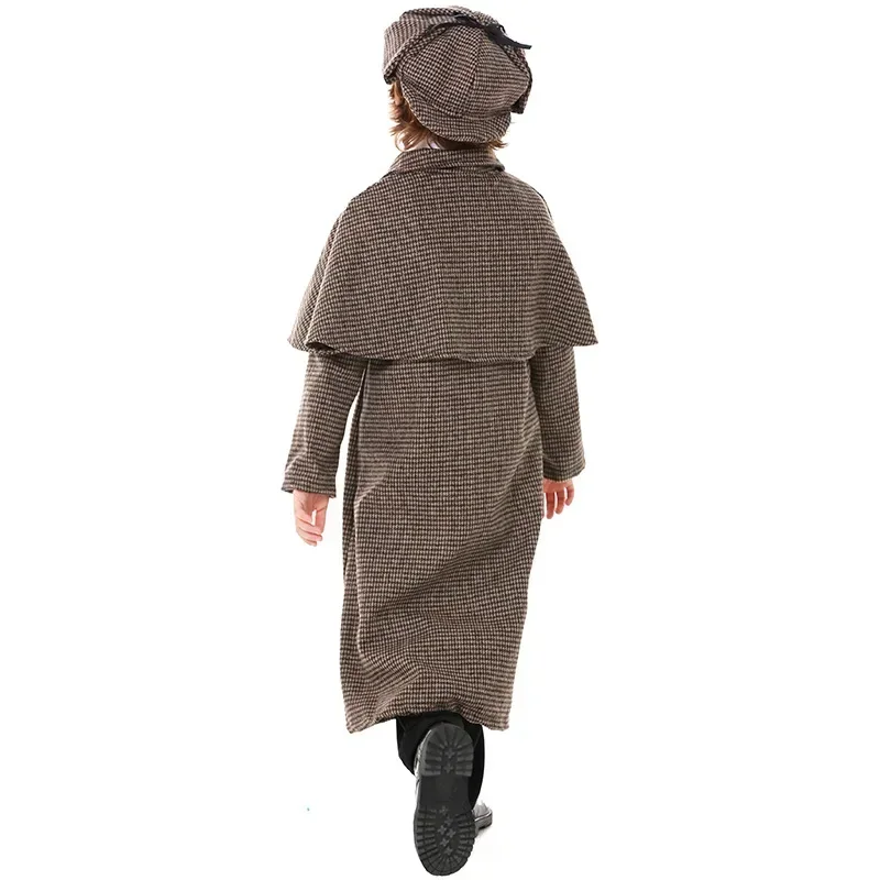 Movie Character British Plaid Turtleneck Coat Boy girl Cosplay Retro Detective Costume Halloween Child Game Uniform