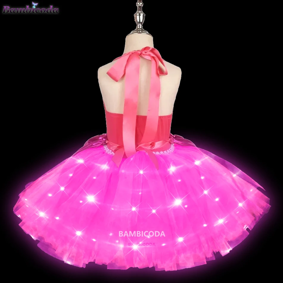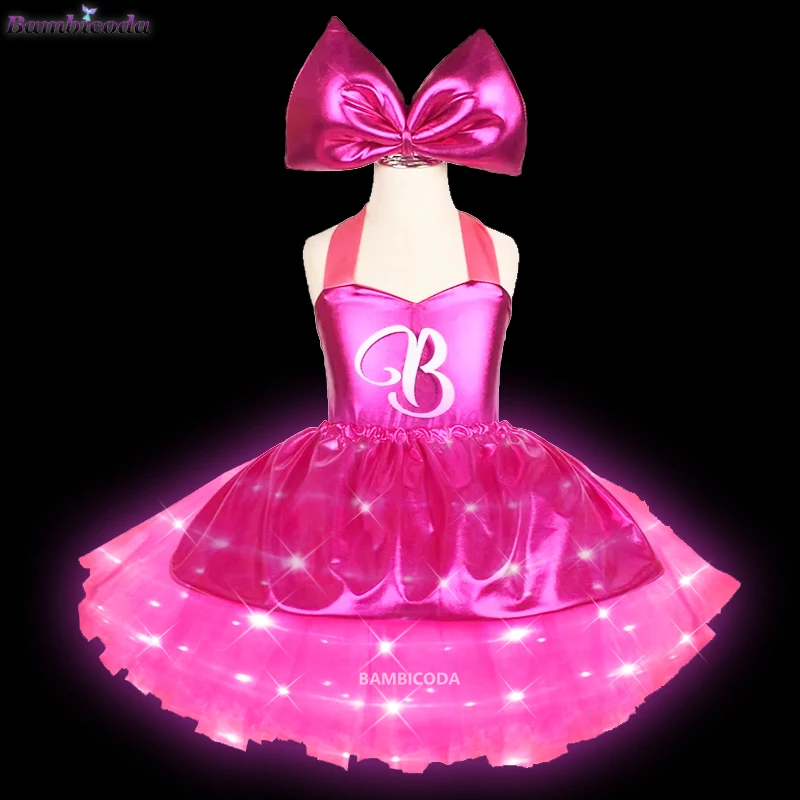 Movie Margot Princess Barbi LED Light Up Costume Starry Pink Vest Dress Suit For Kids Girls Halloween Birthday Party Pink Dress
