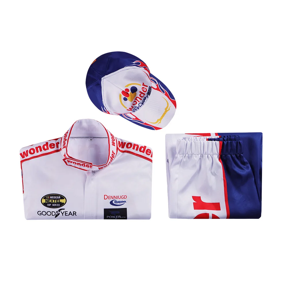 Talladega Nights Ricky Bobby Racing Jacket Pants Hat Uniform Cosplay Red Cal Naughton Jr. Wonder Bread Racing Suit Party Costume