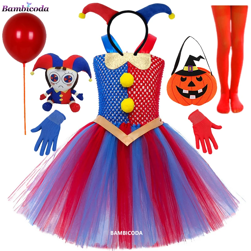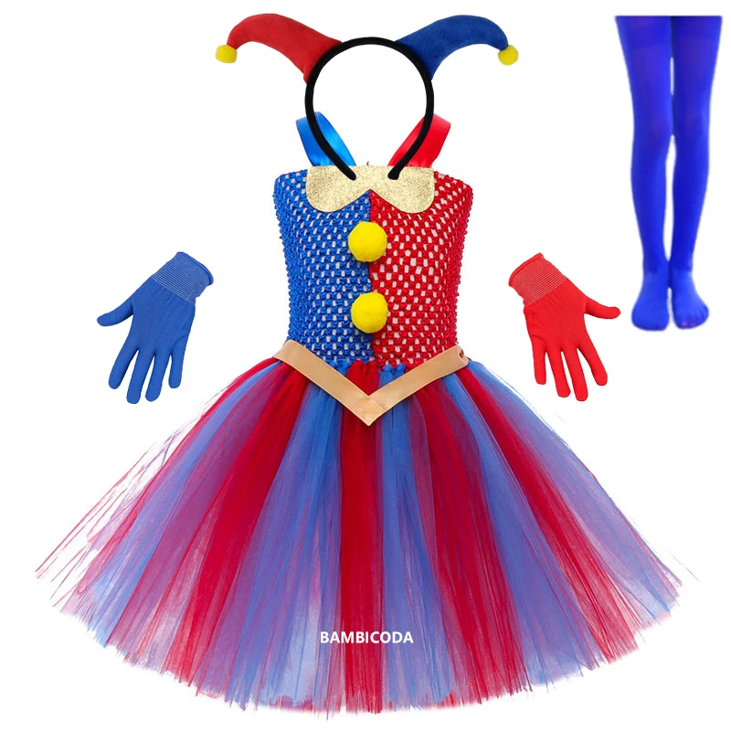 Movie The Amazing Digital Circus Pomni Cosplay Costumes Girls Princess Tutu Dress Gloves sets Halloween Carnival Party Clothes