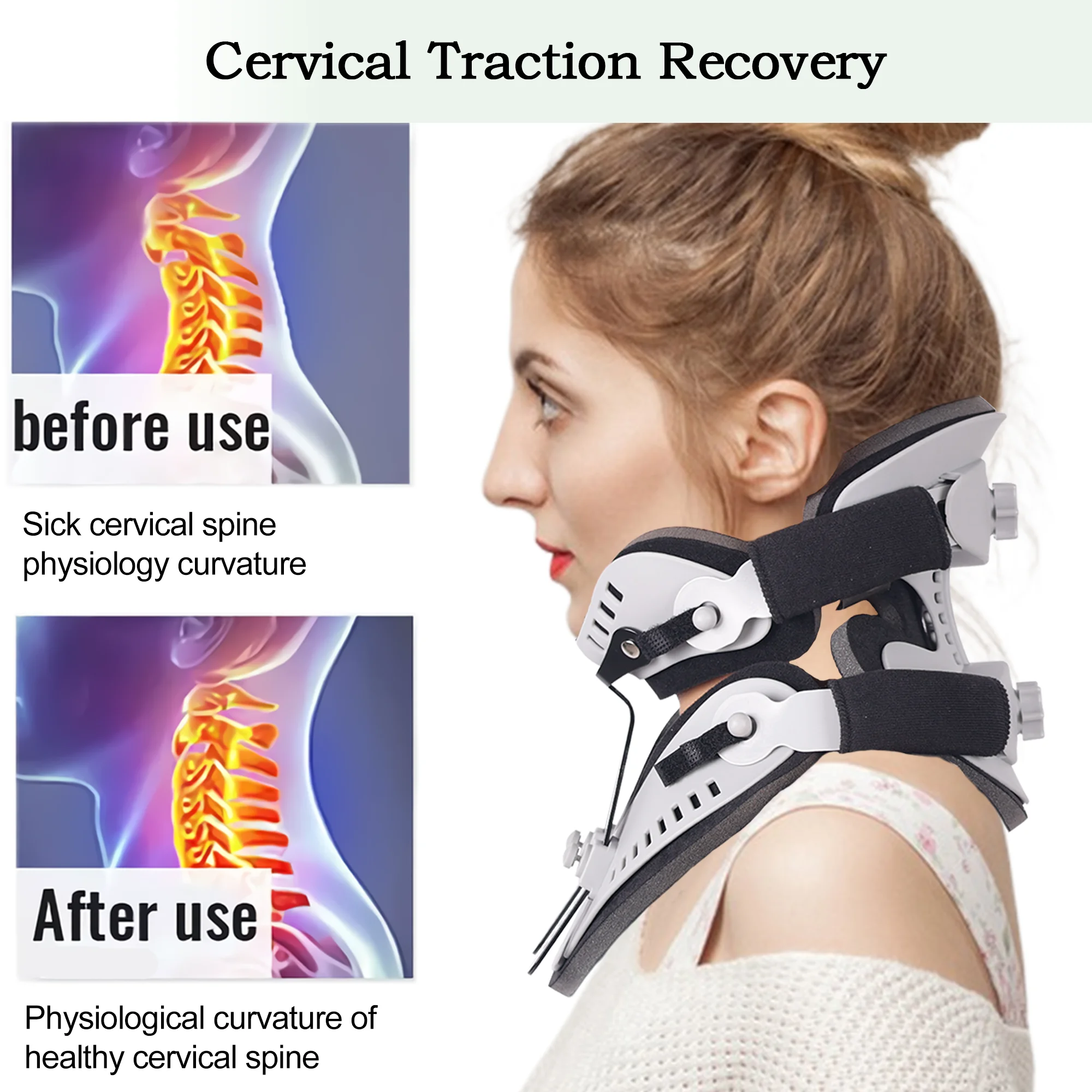 This cervical collar is not only effective in providing relief but also boasts an easy-to-use and adjustable design. The two fixing buckles make it simple to put on and take off, while the twin-screw knob allows for six height settings to be customized for optimal comfort and support. The tension adjustment dial enables users to fine-tune the fit, ensuring a secure and comfortable experience. Whether you’re at work, home, or engaging in computer viewing, this neck brace is an essential tool for daily cervical spine care.