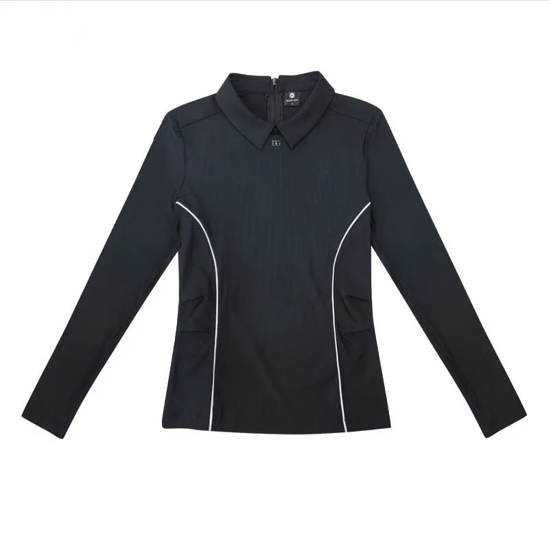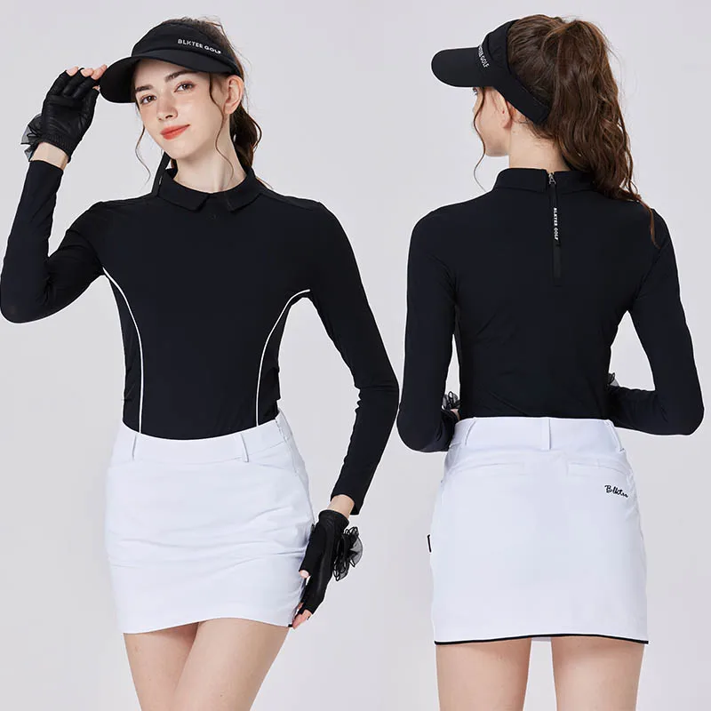 New Blktee Golf Clothes Women Long-sleeve Lapel T-shirt Slim Waist Fashionable Elegant Tops Ladies Striped Leisure Sports Shirt