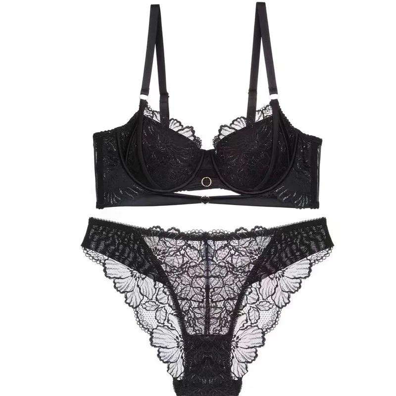 French Style Sexy Ultra-thin Lace Lingerie Beautiful Back Women Anti Sagging Solid Bra Brief Set Fe...