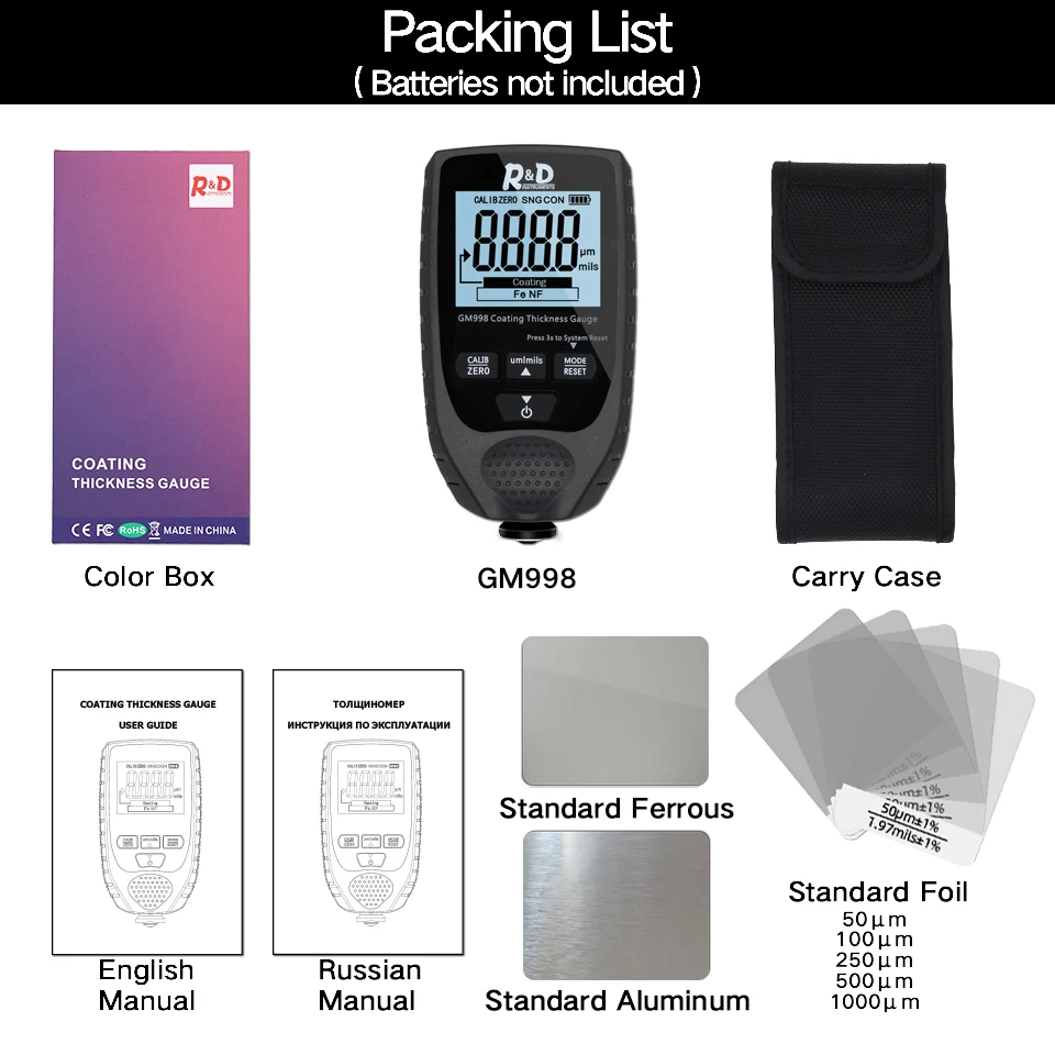 R&D GM998 car paint coating thickness gauge car paint electroplate metal coating thickness test...