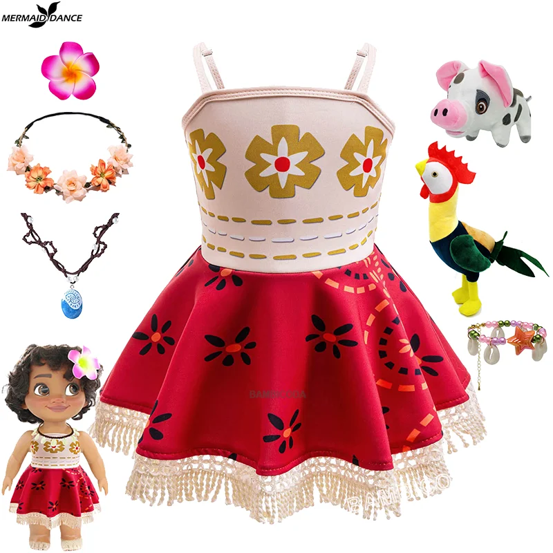 New Moana 2 Dress Girl Moana Princess Dress Cosplay baby One-Shoulder Suspender Dress Accessories Set Party Beach Clothing