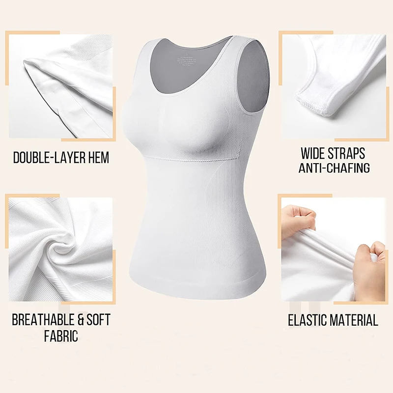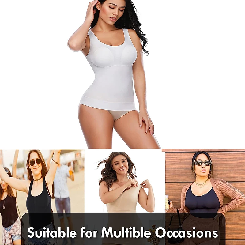 Camisoles with Built in Bra– The cami shaper equiped with removable bra pads, it is more comfortable and stable without moving or folding, and have good support. You don’t need to wear separate bra, and you can remove it when you washing.