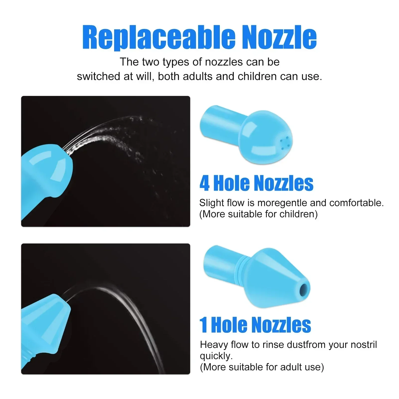 3. Choose the correct nozzle :Be sure to select the child nasal wash tip for children .Children cannot use adult tip.