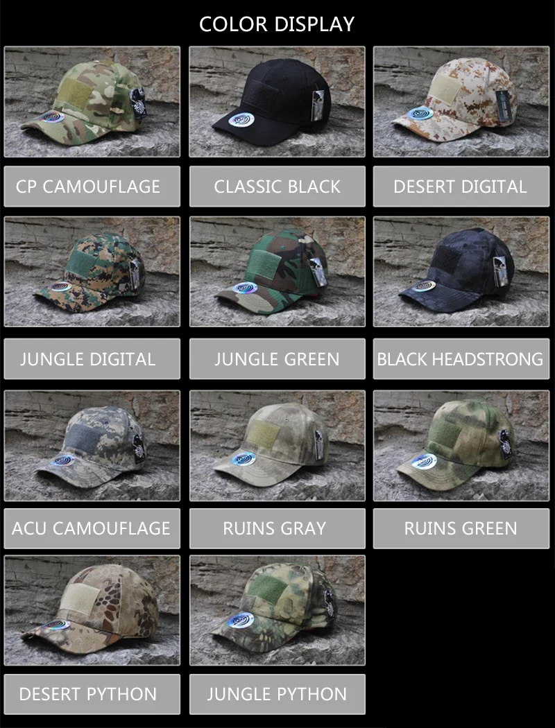 | Color | 12 color camo hat |