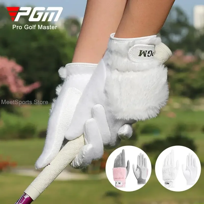 Pgm 1 Pair Women Winter Golf Gloves Anti-Slip Artificial Rabbit Fur Gloves Ladies Left And Right Hand Warmth Mittens 2 Colors
