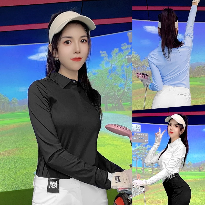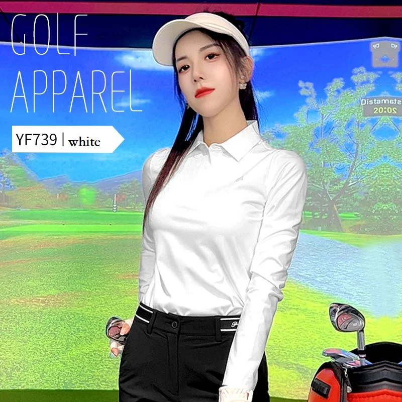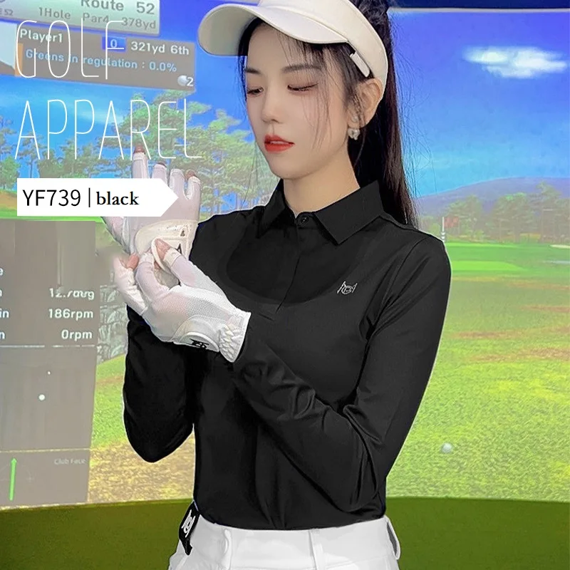 Pgm 2024 Autumn Spring Women Golf Tops Breathable Long Sleeve Polo T-shirt Elastic Fitness Causal Shirt Ladies Tennis Sportswear