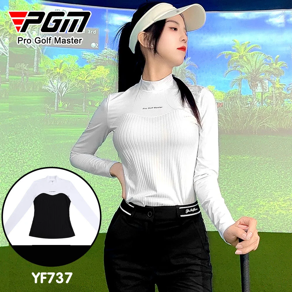 Pgm Autumn New Golf Shirts Women’s Long Sleeves Breathable Tops Ladies Quality Patchwork Sports T-Shirts Thin Soft Golf Clothing