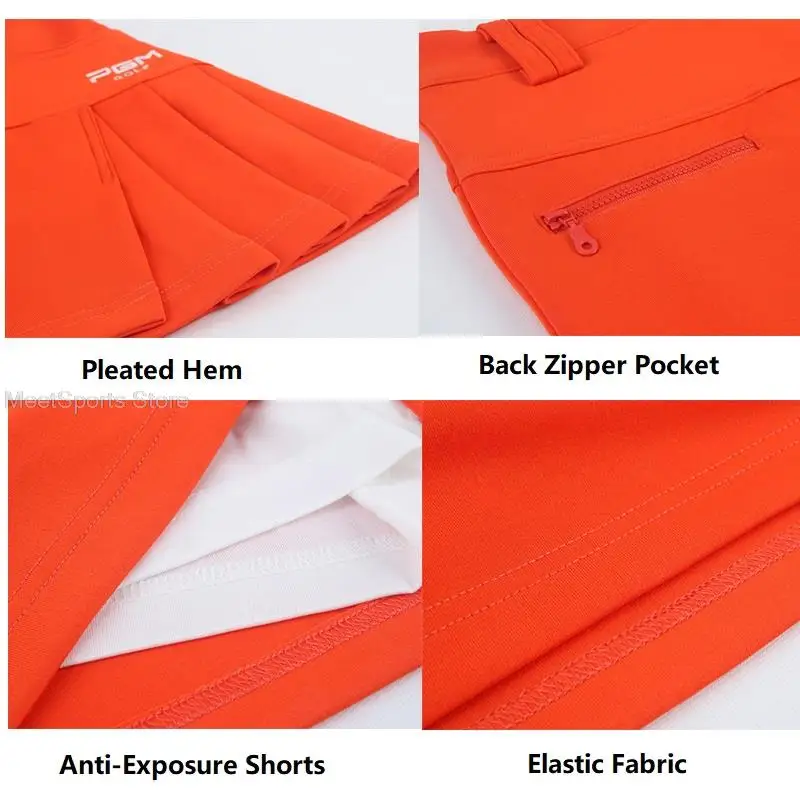 PGM Lady Pleated Skirt High Waist Golf Skirt Autumn Thicken Sports Skort Women Slim Pencil Skort Golf Shorts with Pocket