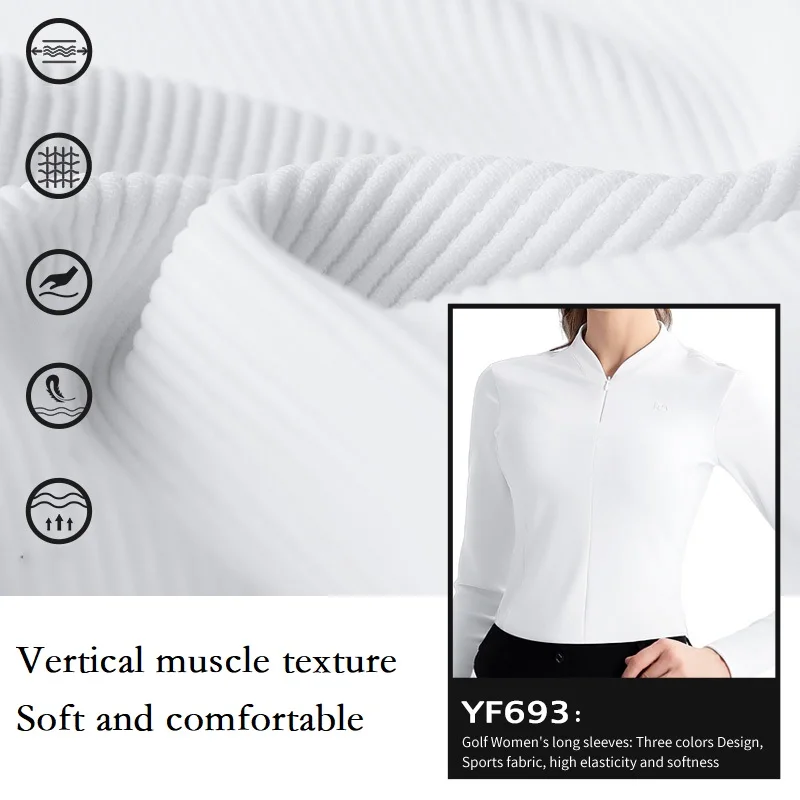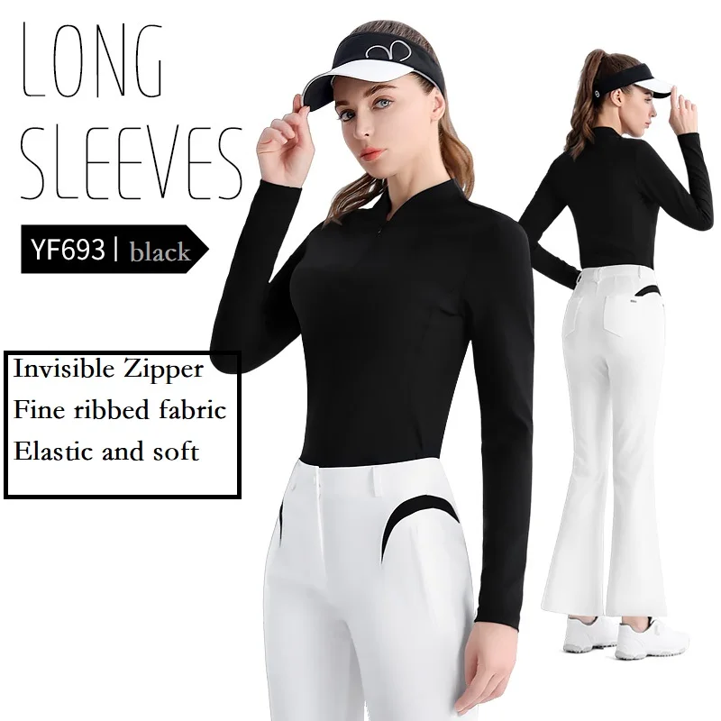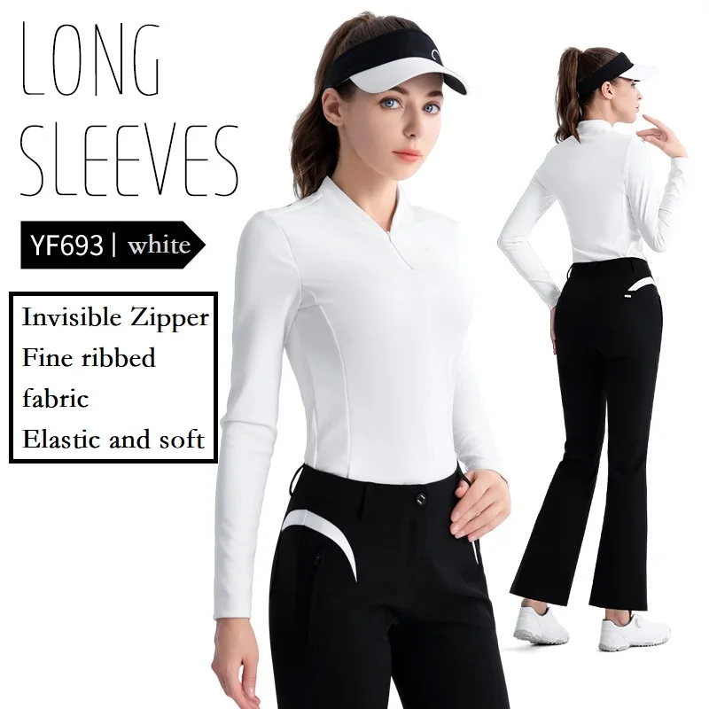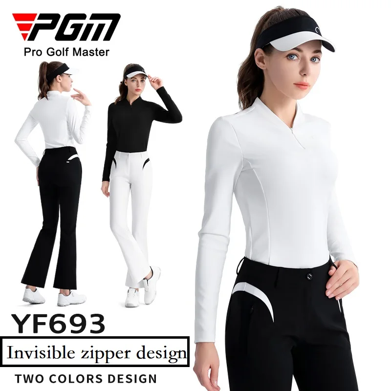 Pgm Autumn Ladies Slim Long Sleeve Golf Shirt Women Zipper Collar Polo Casual Tops Ladies Elastic Elegant Shirt Golf Apparel S-XL