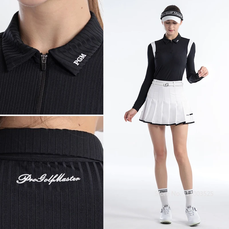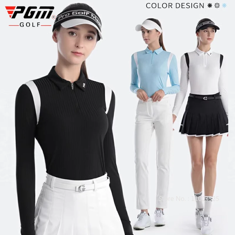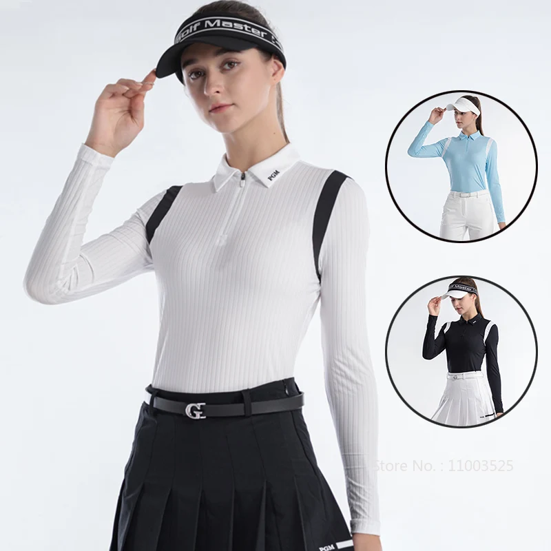 PGM Fall Spring Golf Women Long Sleeve Clothing High Stretch Fast Dry Tops Slim Sports Polo Shirts High Quality Breathable Tee