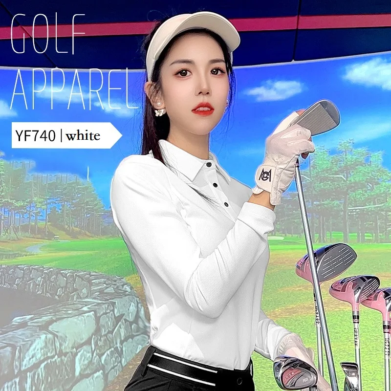 Women Sports Lapel T-shirt Long-sleeved Polo Collar Golf Blouse Lady Breathable Elastic Sportswear S-XL