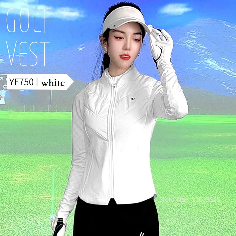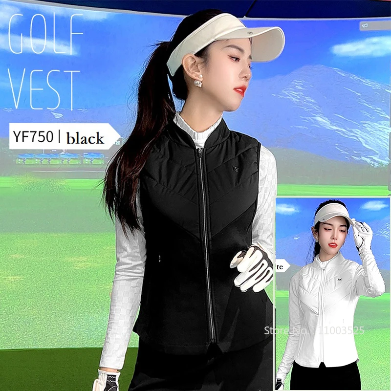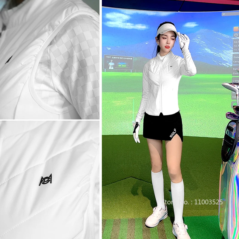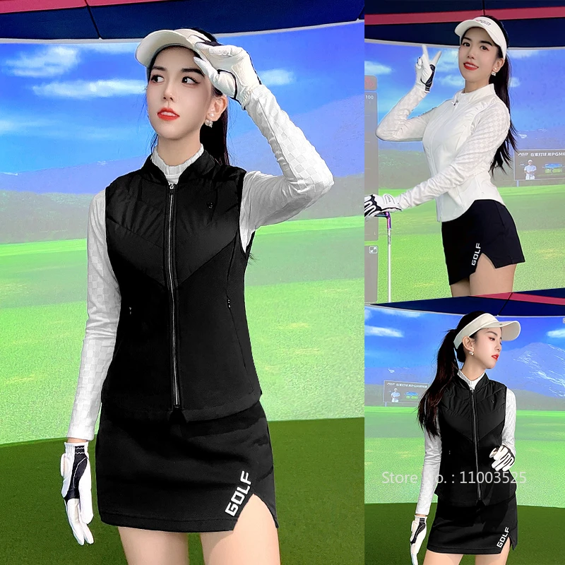 PGM Autumn Women Golf Sleeveless Waistcoat Ladies Windproof Golf Vest Female Sports Jacket Keep Warm Outwear Full Zip S-XL