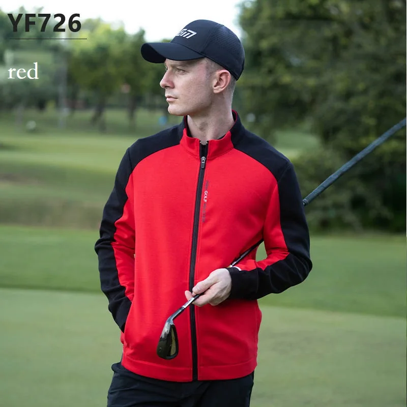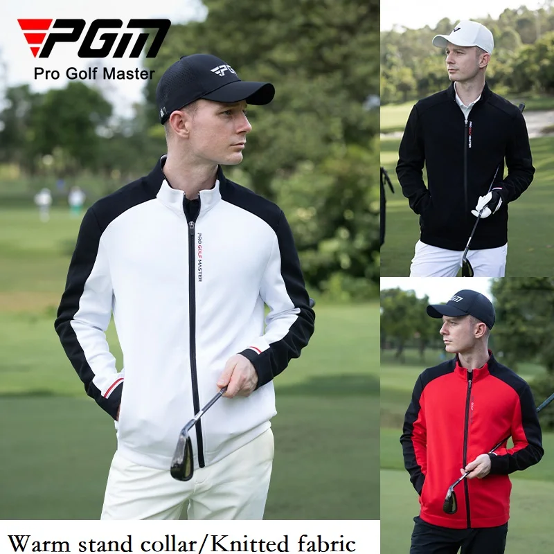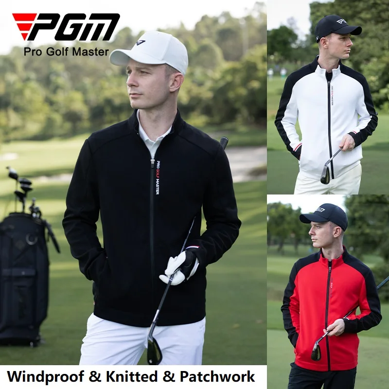 Pgm Golf Clothing Men’s Autumn Winter Windproodf Sport Coat Stand Collar Warm Golf Jacket Male Patchwork Casual Knitted Wear