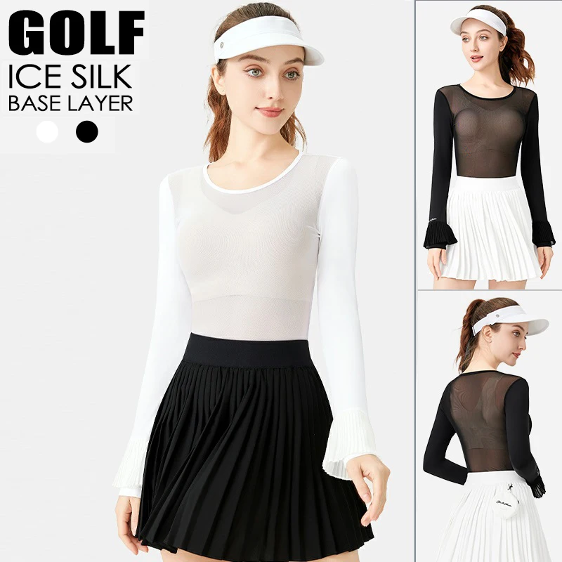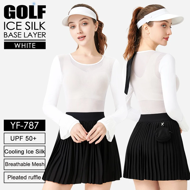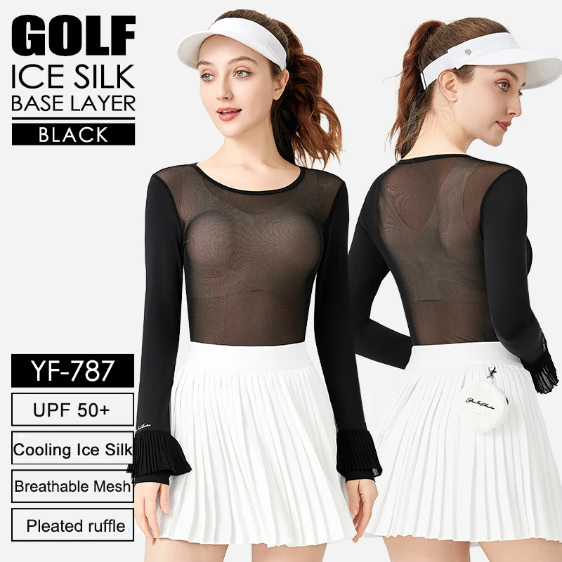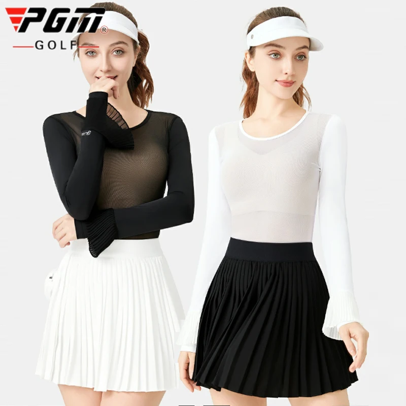 PGM Golf Ice Silk Base Shirt Women’s Sunscreen Long Sleeve T-shirt Flared Pleated Cuff Golf Tops Coolinng UV Resistant UPF50+