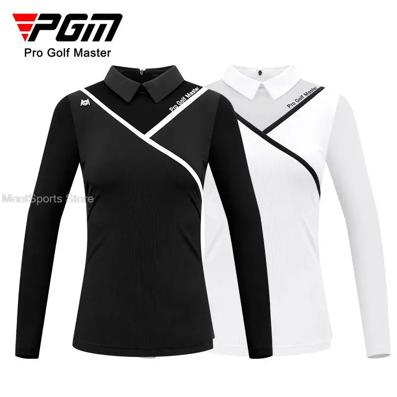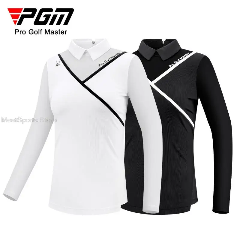 Pgm Golf Women’s Long Sleeve T Shirts Breathable Ice Silk Summer Tops Ladies Cooling Sunscreen Polo Shirts Back Zipper Golf Wear