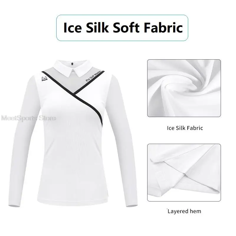 Women Golf T-shirt Long Sleeve Polo Tops Summer Ladies Quick-dry Slim Golf Shirts Ice Silk Slim Golf Clothing