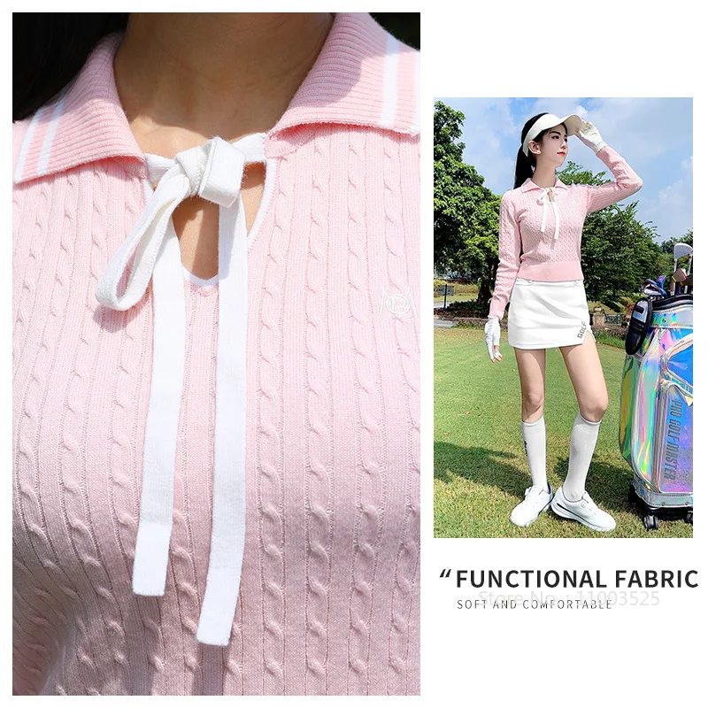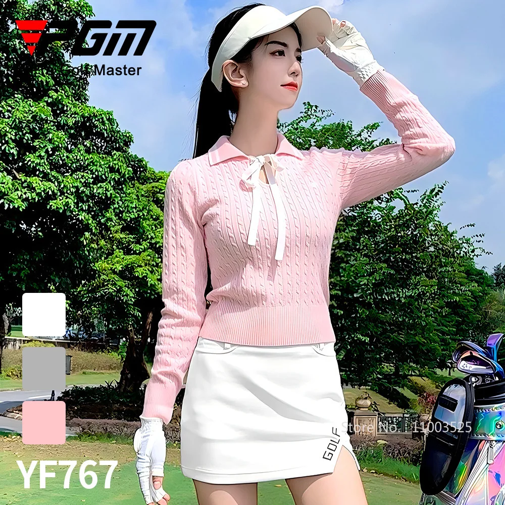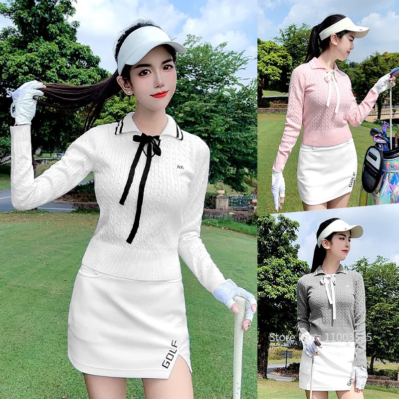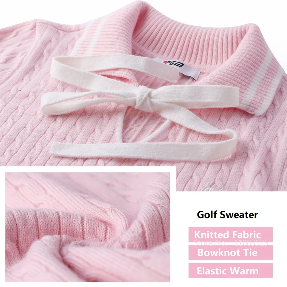Pgm High-end Fashion Golf Sweater Women Knitted Sports Shirt Bowknot Luxury Warm Tops Ladies Long Sleeve Golf Sportswear