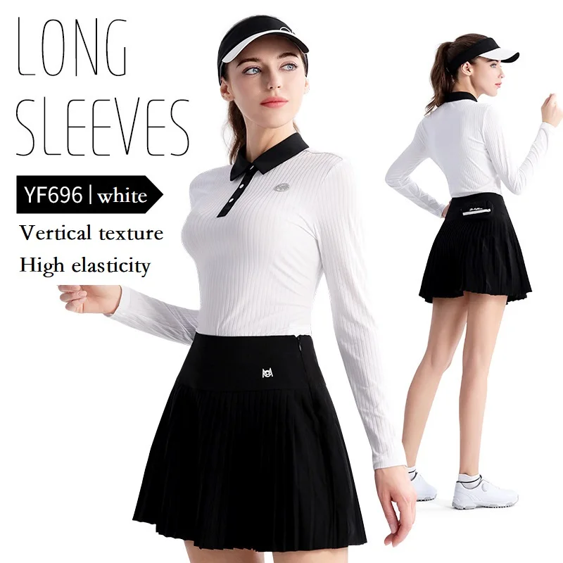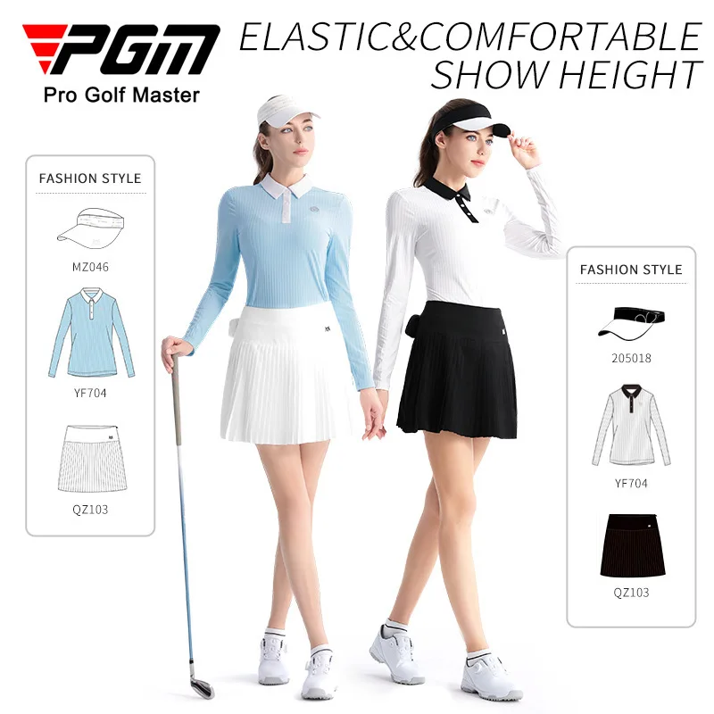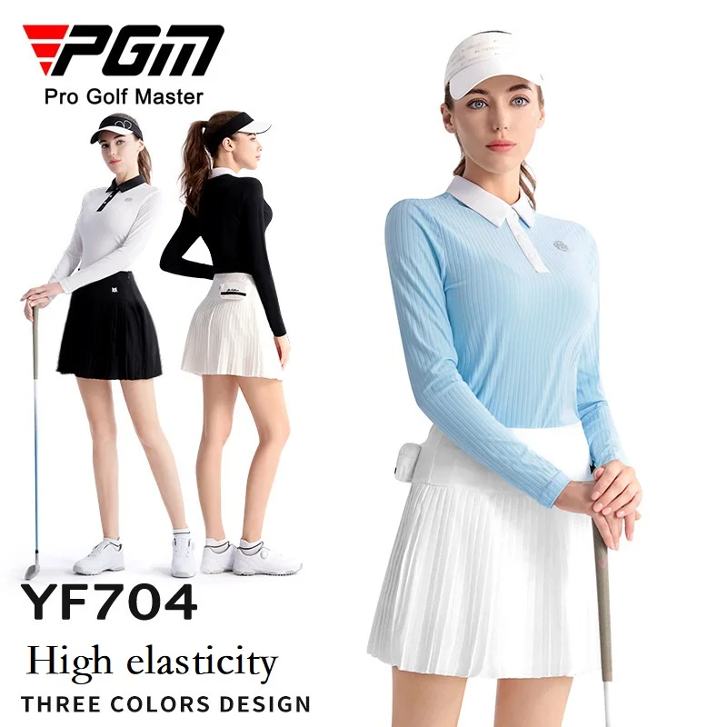 PGM Ladies Spring Long Sleeve Golf Polo Shirt Elastic Sports Shirt for Women Slim Casual Golf Tops Girls Quick-Dry Fitness Tee