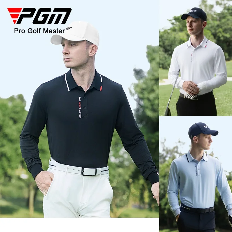 Pgm Men's Long Sleeve POLO Shirt Solid Lapel Button Tops Breathable Quick-Dry Office Business Casual Pullover Sports T-shirt