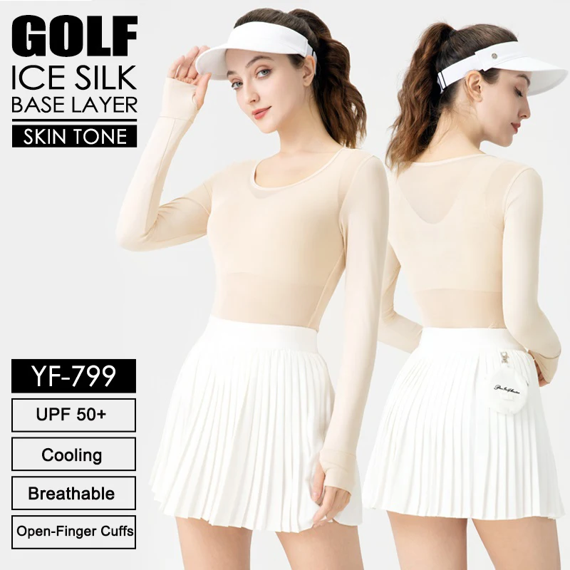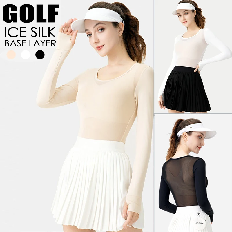 Pgm Sunscreen Golf Shirt Women Outdoor UV Protect Cooling Tops Ice Silk Round Neck Underwear Sport Long Cuff Sleeve Clothing
