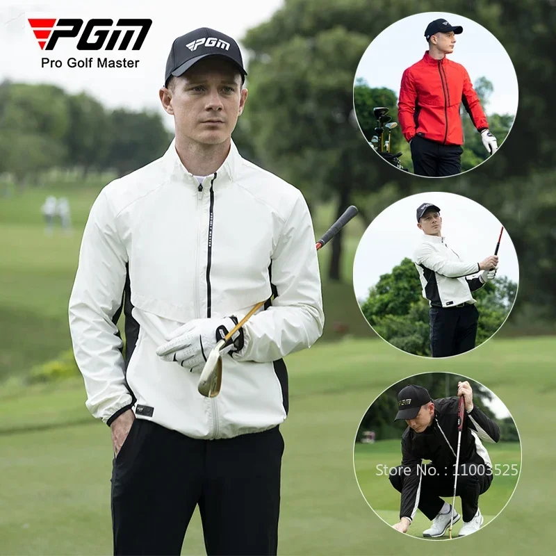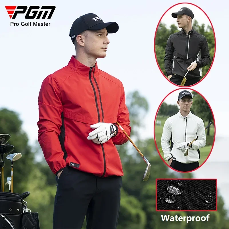 PGM Waterproof Golf Jacket for Men Windproof Golf Coat Sunscreen Thin Sports Outwear Full Zipper Sports Tops Stand Collar Wear
